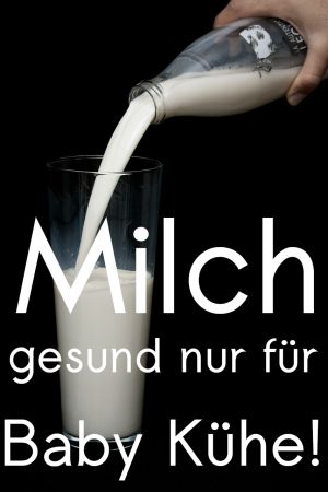 Und, und, und .... | Auch wird Kuhmilch und deren Produkte immer noch als gesund verkauft, obwohl dies nicht den Tatsachen entspricht. Verarbeitung und Herstellung verpanschen das ohnehin für den Menschen ungesunde Erzeugnis noch mehr.[[Datei:Gesund nur für baby kühe.jpg|mini|Milch von Tieren braucht kein Mensch!]]Und, und, und .... | ||